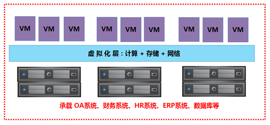 部署企业级云后,只需几台服务器即可承载30多个业务系统。需要测试或上线新系统时,仅需在平台新建虚拟机分配资源即可,无需再频繁采购服务器等硬件,大幅提高效率,并降低硬件投入。