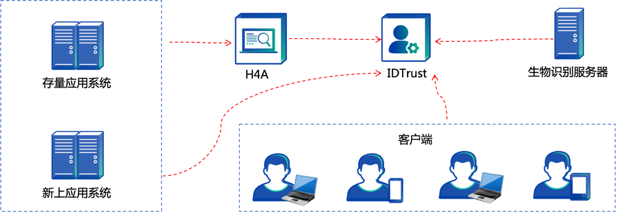 部署IDTrust对接CA服务器,新上业务系统,同时提供基于FIDO协议的指纹、人脸认证方式。