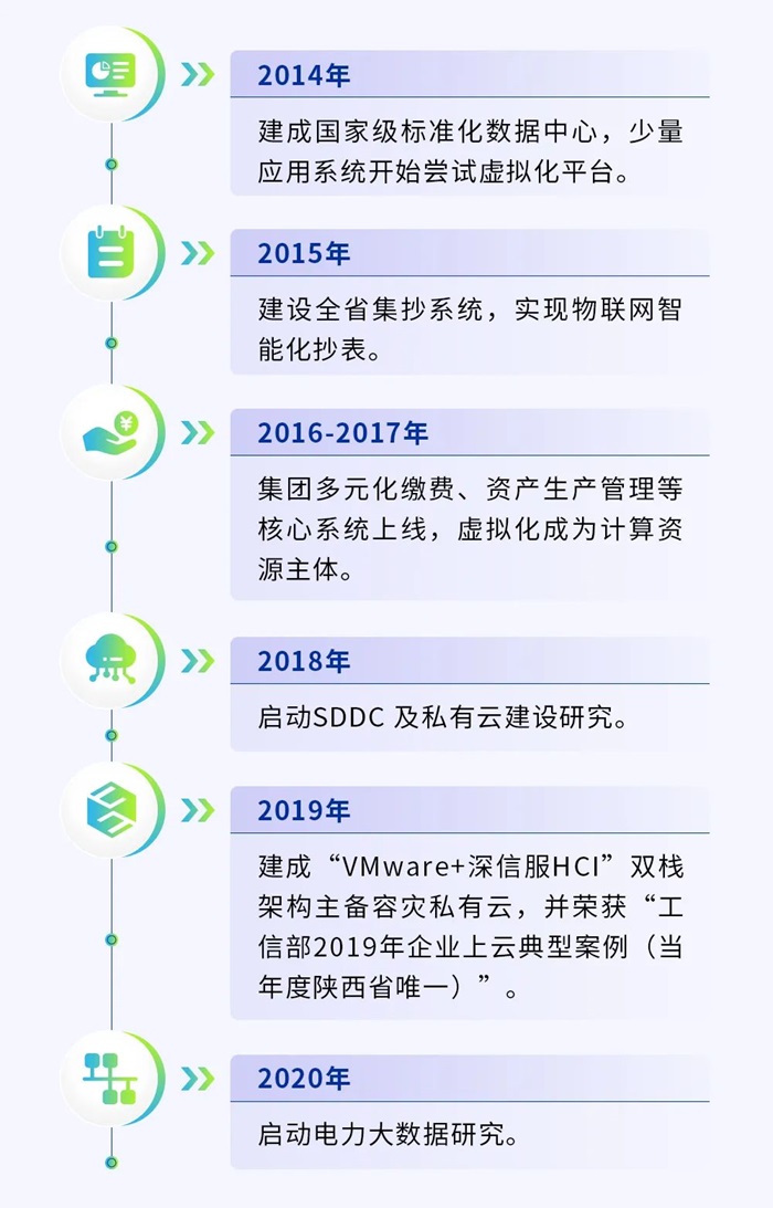 日前,工信部公布了2019年企业上云典型案例名单,全国仅27家企业入选, 其中,陕西省地方电力(集团)有限公司(以下简称“陕西地电”)成为陕西省唯一一家入选企业。据悉,此次参与竞选的企业多达上千家,陕西地电的“VMware+深信服HCI”双栈架构主备容灾私有云,是凭借哪些硬实力,从众多企业中脱颖而出?