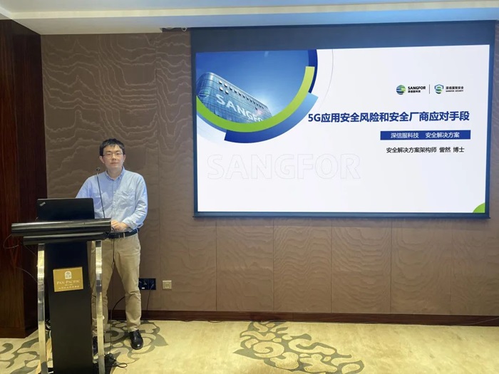 在此次活动中,深信服安全解决方案架构师訾然博士发表了《5G应用安全风险和安全厂商应对手段》的主题演讲,并基于5G新基建发展方向,配合运营商整体建设脚步,结合安全体系建设需要,提出了“立体保护 全局运营”的5G MEC安全解决方案,为5G时代下运营商行业乃至其他各行业信息化发展提供有力的安全保障。
