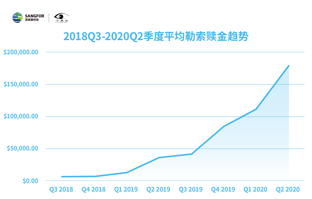 《报告》指出,与2019年相比,2020年第二季度的赎金要求同比增加了4倍。这对本来就艰难的受害者而言无疑是“雪上加霜”。