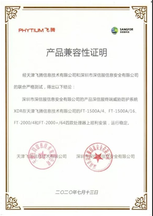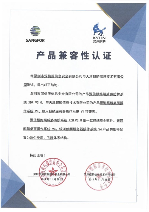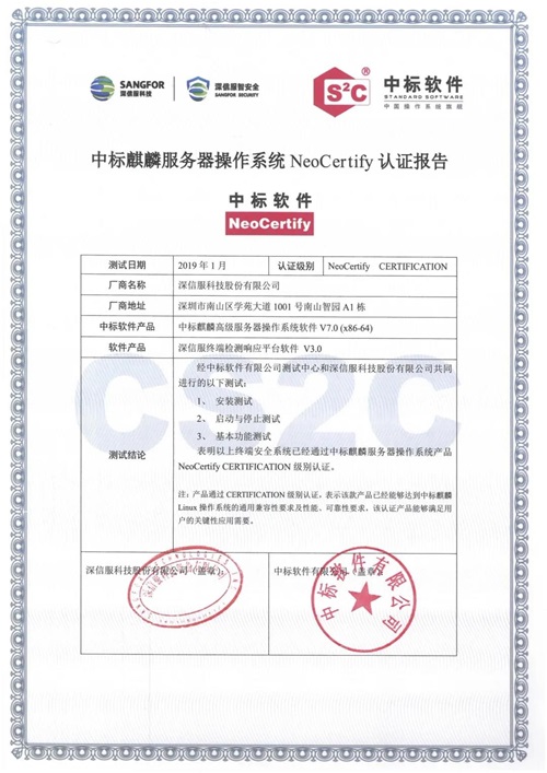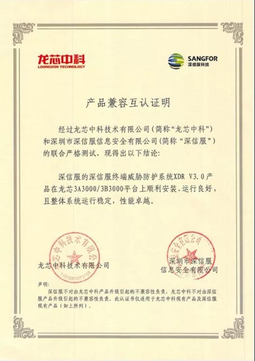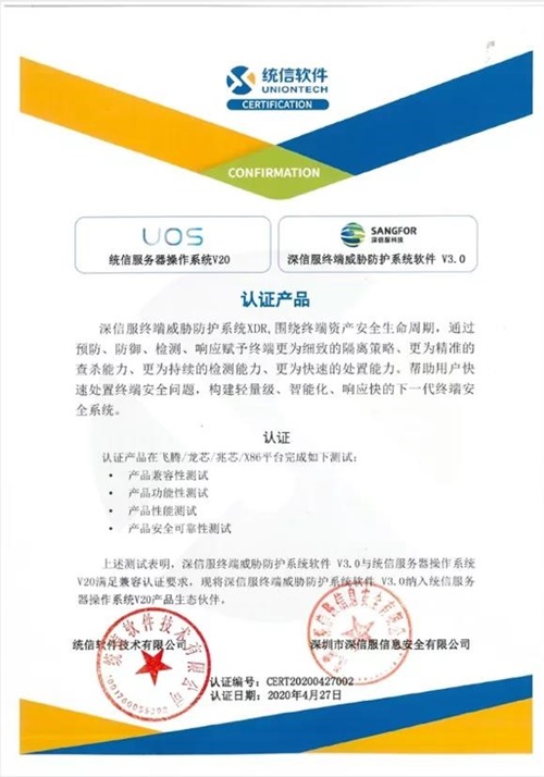 深信服EDR完成与国内八大主流操作系统、CPU兼容认证