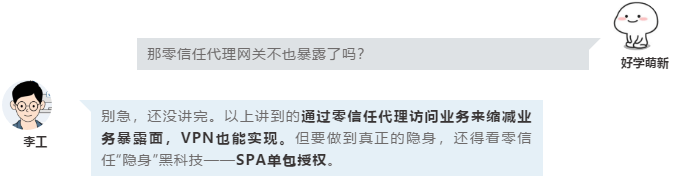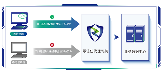 通过SPA单包授权技术,保证了只有具备合法SPA种子的客户端才能与零信任代理网关建立连接实现对业务系统的访问。