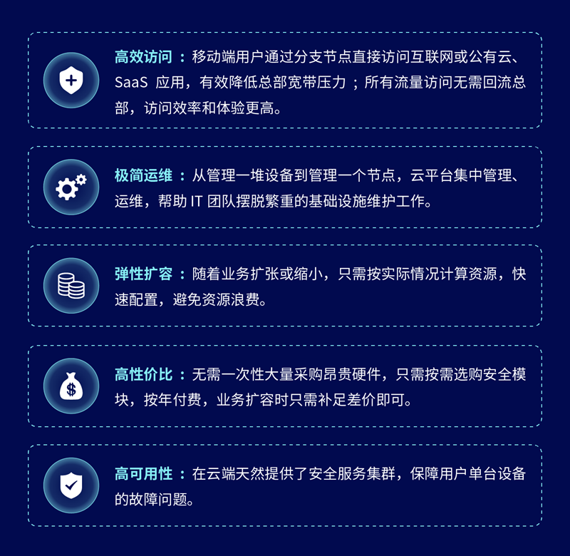 相比传统的安全架构,SASE 开启了更简单、更安全、更便捷使用和维护的安全新模式,以支持数字化企业的安全需求。基于 SASE 的云安全访问服务在优化访问体验、就近接入、简化运维、资源随业务变化重新配置、节约成本等方面也提供支持。