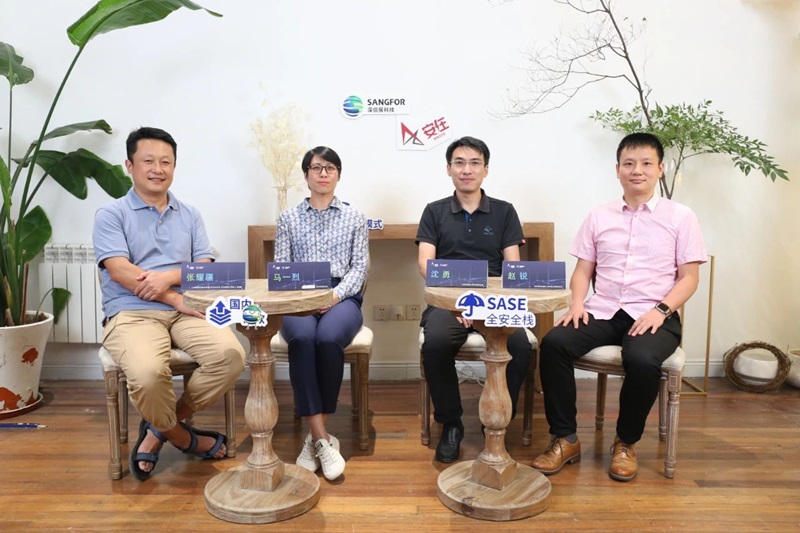 发布会结尾,深信服联合专业媒体安在组织以“大话 SASE 安全产品”为主题的CSO圆桌。安在创始人张耀疆与众位CSO大咖聚集一堂,共同就 SASE 产品在中国市场的发展,以及如何帮助企业产生价值进行了讨论。